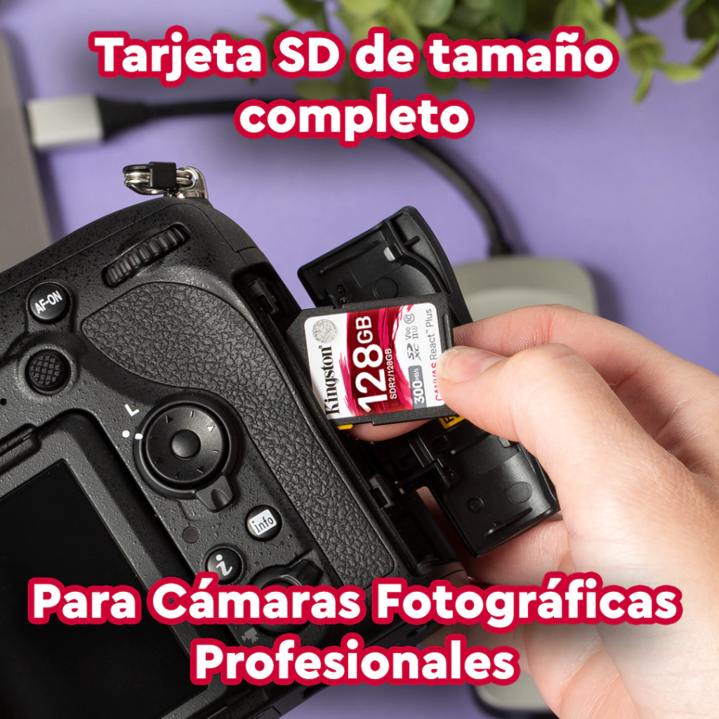 La tarjeta de memoria 128GB Kingston® CANVAS React™ Plus SDXC™ UHS-II V90 está diseñada para satisfacer las demandas de los creadores de contenido y fotógrafos profesionales. Con velocidades de transferencia de hasta 300 MB/s, podrás capturar y transferir tus archivos de manera rápida y eficiente, optimizando tu flujo de trabajo.