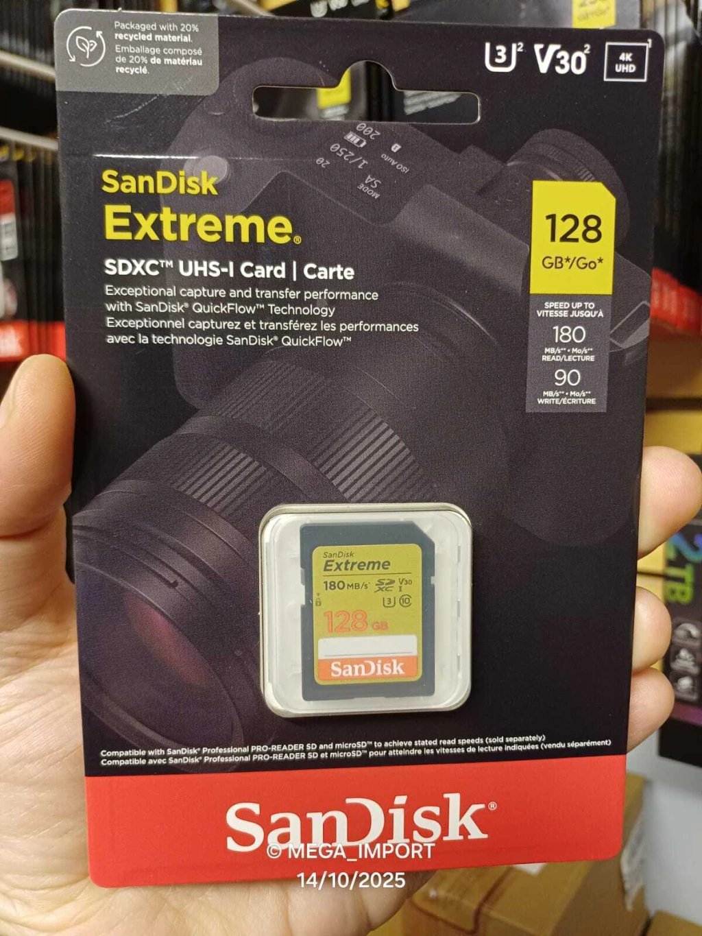 La tarjeta de memoria SanDisk Extreme® SD™ UHS-I ofrece un rendimiento que te permite tomar el control de tu creatividad. Con velocidades de filmado de hasta 90 MB/s⁶ y grabación de clase 3 de velocidad UHS 3 (U3)², podrás capturar impresionantes vídeos 4K UHD de alta resolución sin intermitencias¹. Gracias a sus excelentes velocidades de transferencia de 180 MB/s⁶, podrás mover las fotos rápidamente a la ubicación que quieras. Además, se ha fabricado para soportar condiciones climáticas extremas, el agua, los golpes y otras situaciones adversas, así que tendrás la seguridad de que te servirá en cualquier lugar.